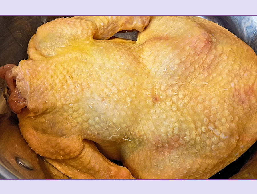 - Place the whole chicken in a large pot with cold water (4L). Bring the water to a boil and let the chicken simmer for 1-2 hours, depending on its size and age of the bird. Periodically skim off the foam from the surface; this is crucial for a clear soup.
