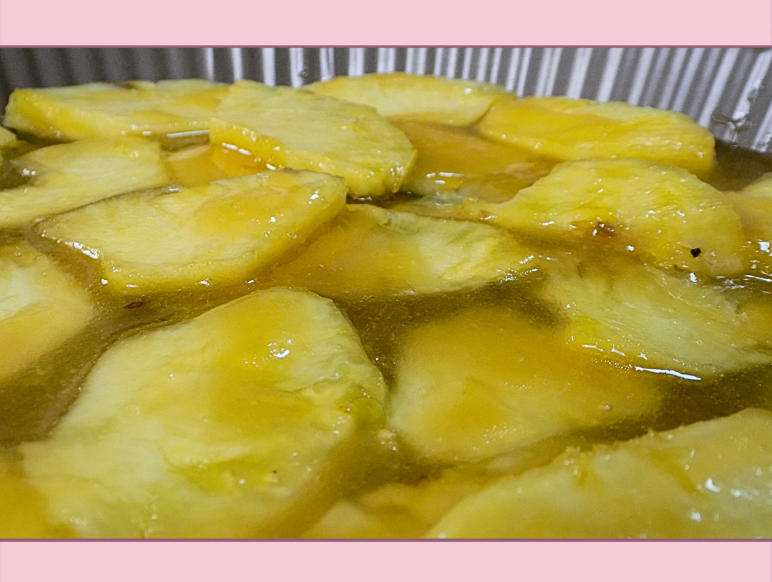 ½ fresh pineapple (peeled and sliced into 12mm thick), 60g unsalted butter, 100g brown sugar.