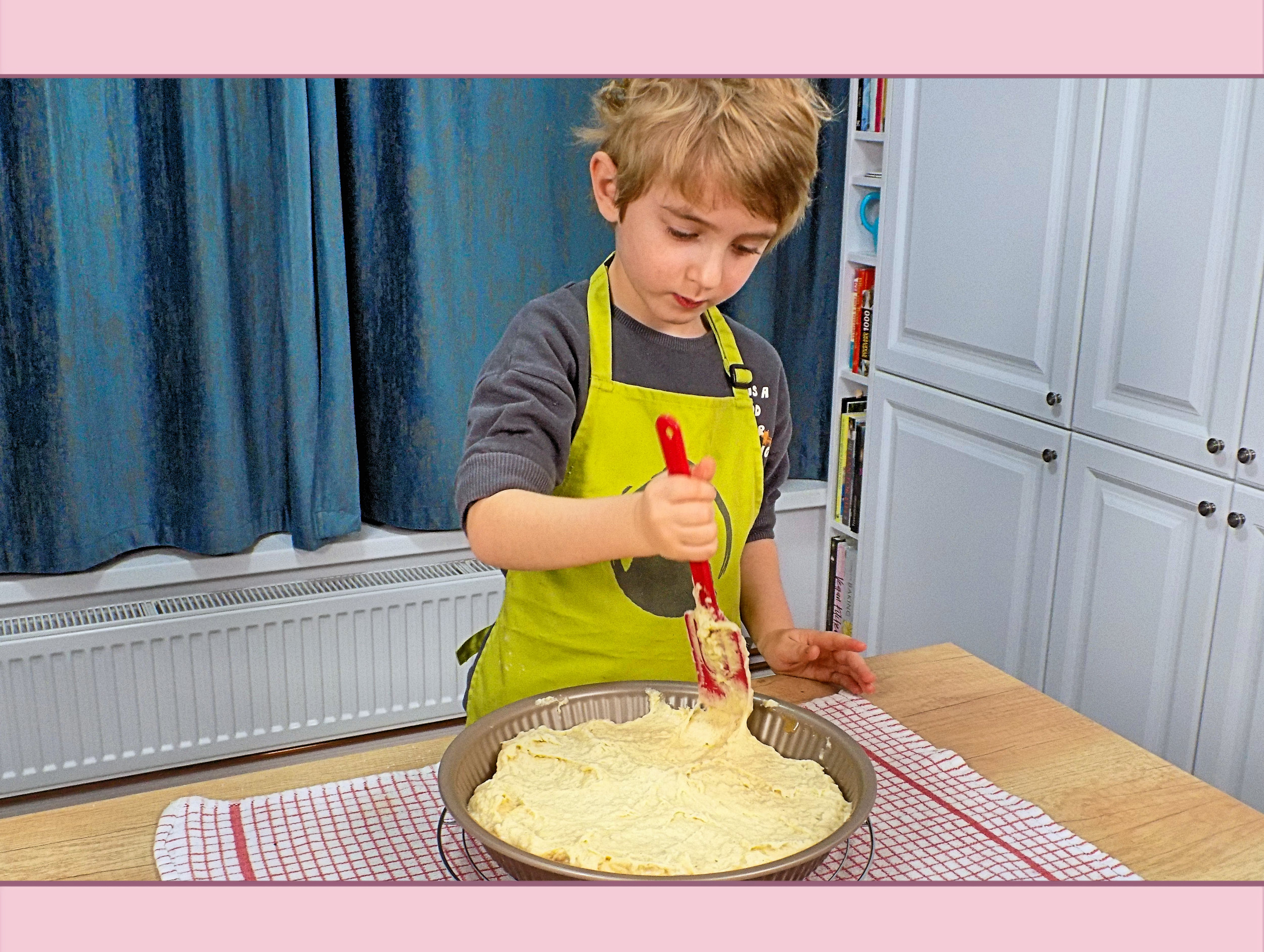 • Bake in the preheated oven for about 35 minutes, or until the top is slightly golden and the centre feels soft to the touch.